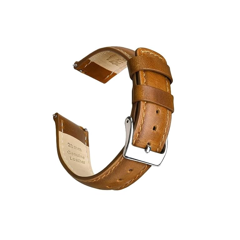 SUNFWR Quick Release Leather Watch Band 18mm 20mm 22mm 24mm for Men Women, Vintage Genuine Leather Strap for Samsung Galaxy Watch 6/Classic/Gear S3/Garmin/Huawei/Timex Watch Bands