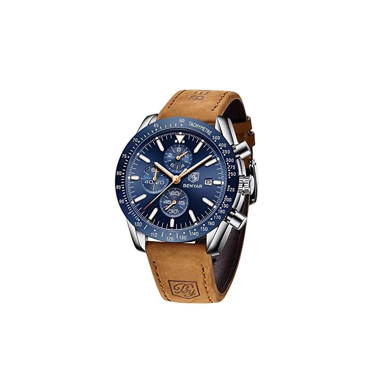BY BENYAR Watch for Men Analog Quartz Chronograph Waterproof Luminous Designer Mens Wrist Watches Business Work Sport Casual Dress Watch with Silicone Strap Elegant Gifts for Men