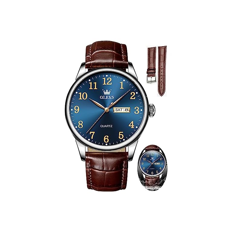 Stuhrling Original Mens Leather Watch -Aviation Watch, Quick-Set Day-Date Leather Band with Steel Rivets,