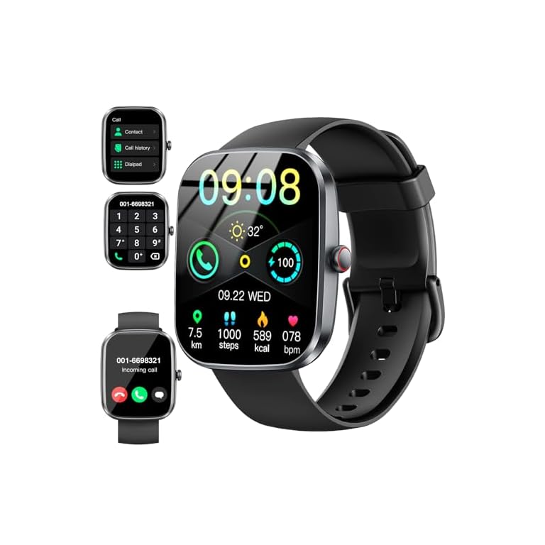 Smart Watches for Men Android iPhone, [1.99″ Amoled Screen] Fitness Tracker Smartwatch with Bluetooth Calls, AI Control, Heart Rate/SpO2/Sleep Monitor, 12 Days Battery, 3ATM Waterproof – Balck