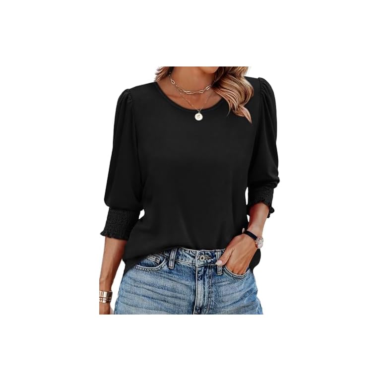 XIEERDUO Blouses for Women Dressy Casual 3/4 Length Sleeve Womens Tops with Smocked Cuffs