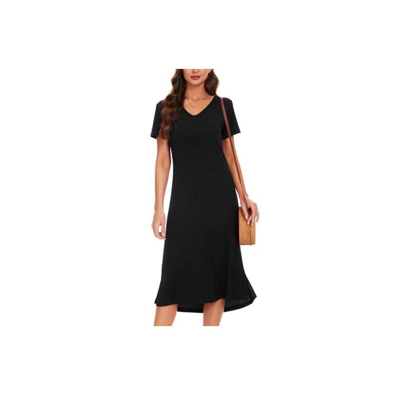 VOBCTY Women’s Casual Short Sleeve Tshirt Dress Summer Side Split Loose V Neck Dresses