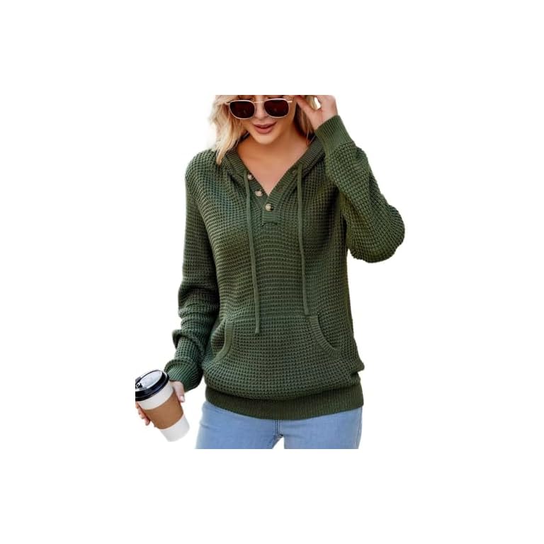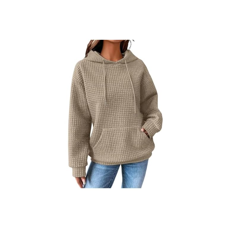 SHEWIN Womens Hoodies Casual Long Sleeve Drawstring Waffle Pullover Tops Loose Hooded Sweatshirt with Pocket
