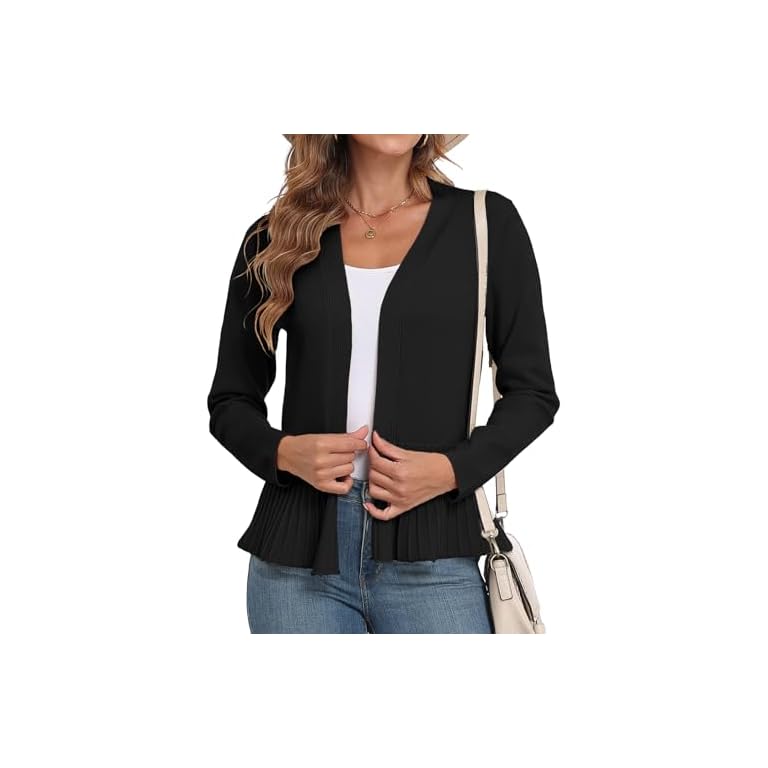 OUGES Women’s Open Front Cardigan Shirt with Pockets Long Sleeve Lightweight Coat