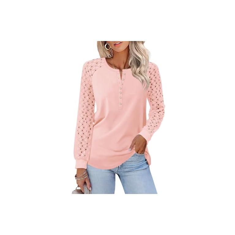 Womens Lightweight Asymmetrical Sweaters Long Sleeve Shirts Casual Fall Button Decor Tunic Tops