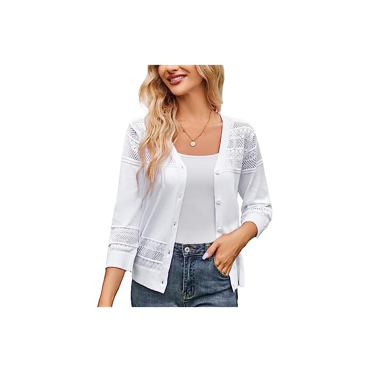 GRACE KARIN Women’s 2025 Cropped Cardigan 3/4 Sleeve Lightweight Crochet Shrug Hollowed-Out Knit Sweater Tops