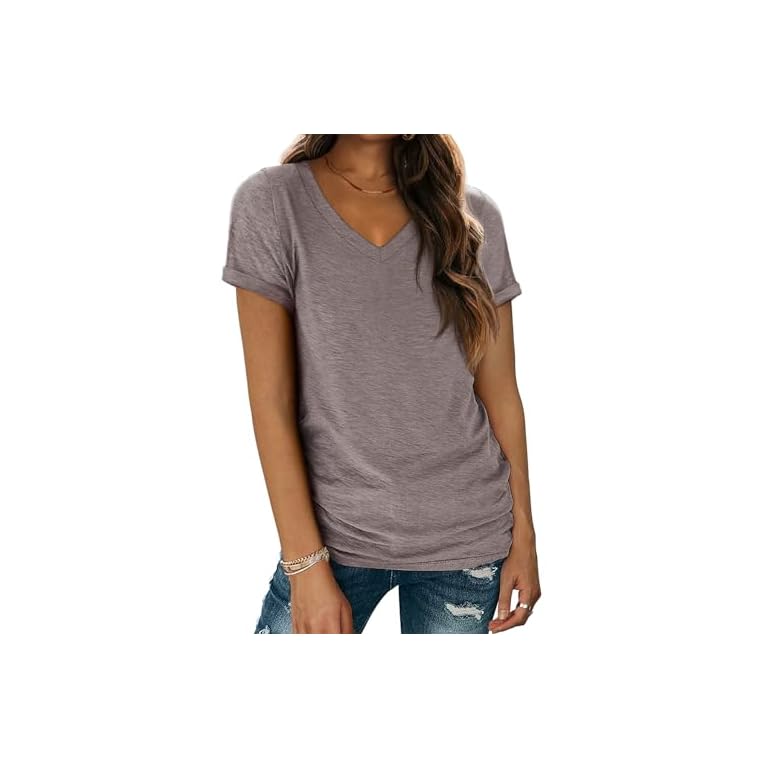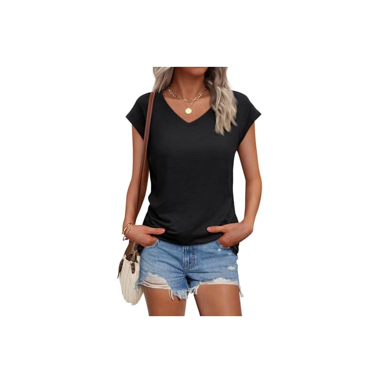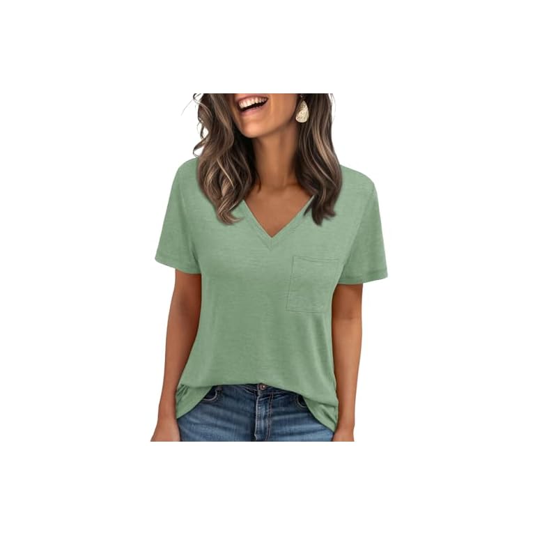 ATHMILE T Shirts Short Sleeve V Neck Tees for Women Fashion Tops Trendy Lightweight Casual Summer Outfits Clothes 2025 Beach