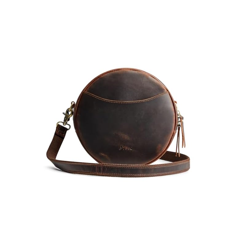 S-ZONE Leather Crossbody Bags for Women Trendy Circle Cross Body Shoulder Bag Designer Round Purses