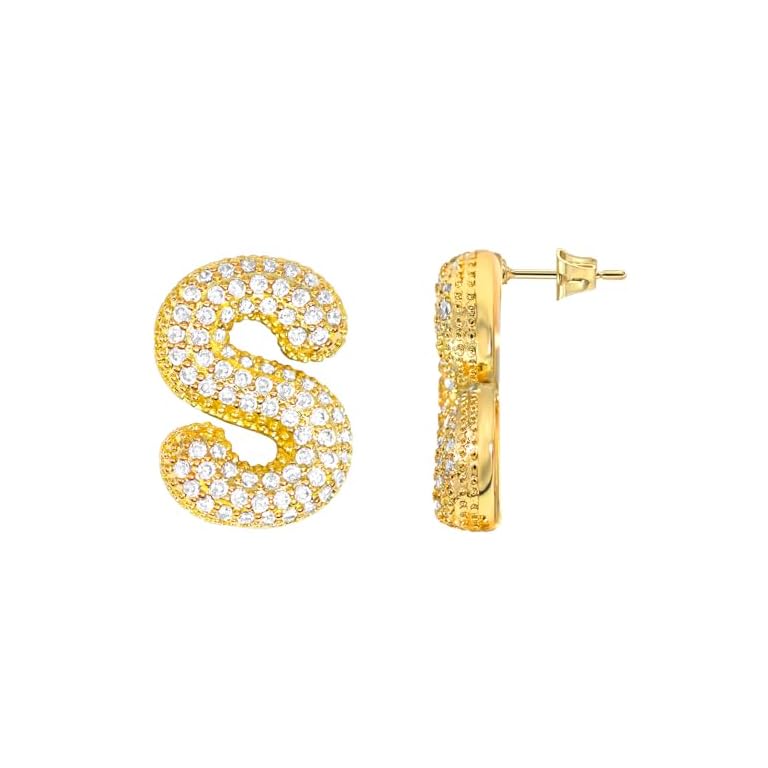 Letter Earrings for Women Sparkly CZ Initial Earrings Stud Gold Plated Alphabet A-Z Earring Birthday Party Statement Engagement Jewelry