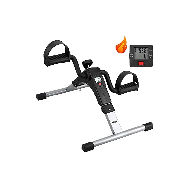 Mini Exercise Bike, AGM Under Desk Bike Pedal Exerciser Foot Cycle Arm & Leg Pedal Exerciser with LCD Screen Displays