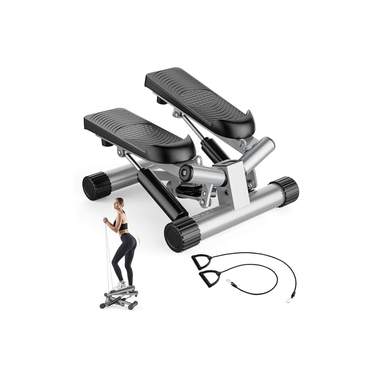 Sweetcrispy Mini Stair Steppers with Resistance Bands for Exercise at Home, Portable Exercise Twist Stepper Machine for Full Body Workout, 265LBS Capacity