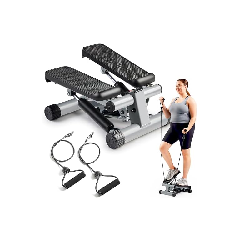 Sunny Health & Fitness Mini Stepper for Exercise at Home, Stair Step Workout Machine with Resistance Band, Fullbody Cardio, Upgraded Over 300lb Weight Capacity, Optional Free SunnyFit App Connection