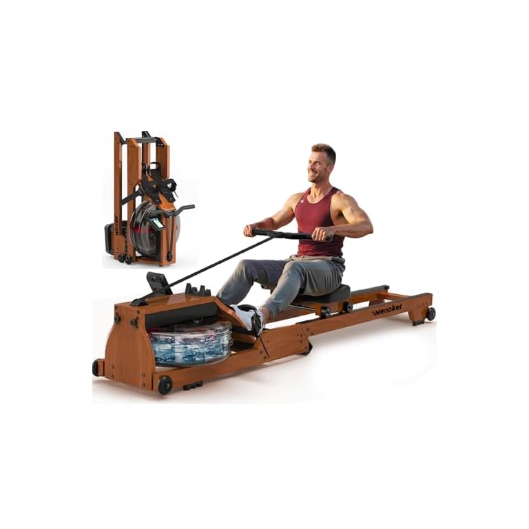 Water Rowing Machine for Home Use, Wooden Foldable Rower Machine with Adjustable Monitor & Bluetooth APP, Large Water Tank & Comfortable Seat for Immersive Water Rower, 350LBS Weight Capacity