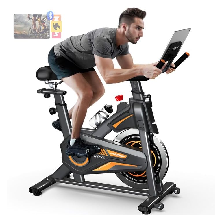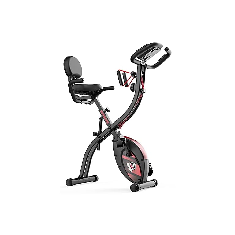 HAPBEAR Folding Exercise Bike Magnetic Foldable Stationary Bike, 3 in 1 Mode Indoor Upright Fitness Workout X-Bike with 8-Level Resistance and Arm Resistance Band, Pulse Sensor,LCD Monitor