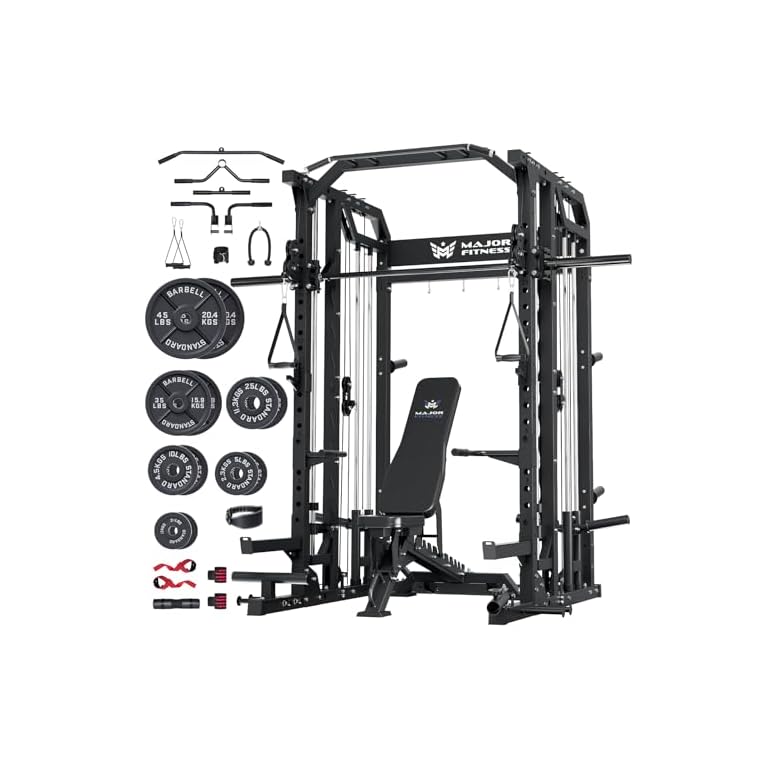 MAJOR FITNESS F22 Multi-Functional Power Rack—1600lbs Capacity All-in-One Squat Rack with Dual Pulley System for Home Gym Strength Training