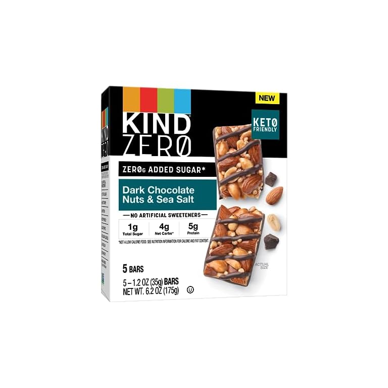 KIND Snack Bars, Dark Chocolate Nuts & Sea Salt, 5g Sugar | 6g Protein, Gluten Free Bars, 1.4 OZ, 12 Count