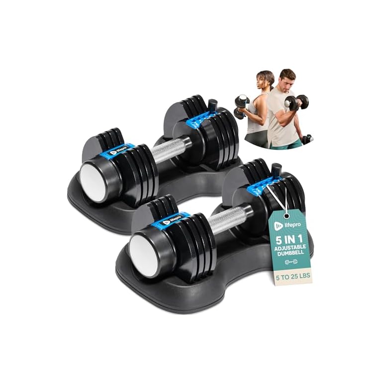 Lifepro Adjustable Dumbbells Set/Single – 15lb 43lb 55lb 25 lb Dumbbell Sets with Rack – Quick Adjust, Secure Grip weights dumbbells set – Compact Hand Weights for Women/Men at Home Gym