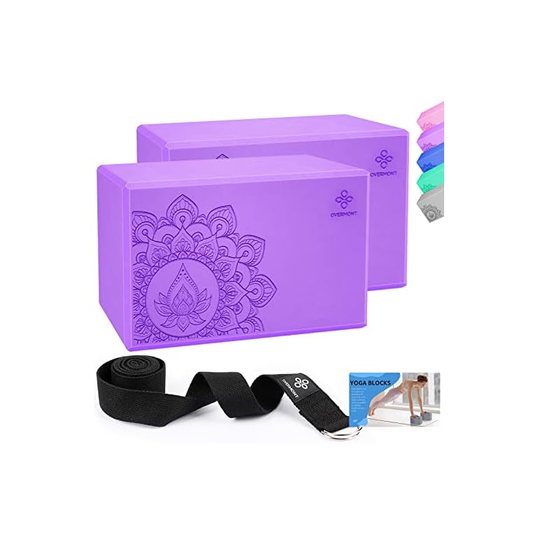 Overmont Yoga Block 2 Pack Supportive Latex-Free EVA Foam Soft Non-Slip Surface for General Fitness Pilates Stretching and Meditation 9″x6″x3″ Yoga Strap Included