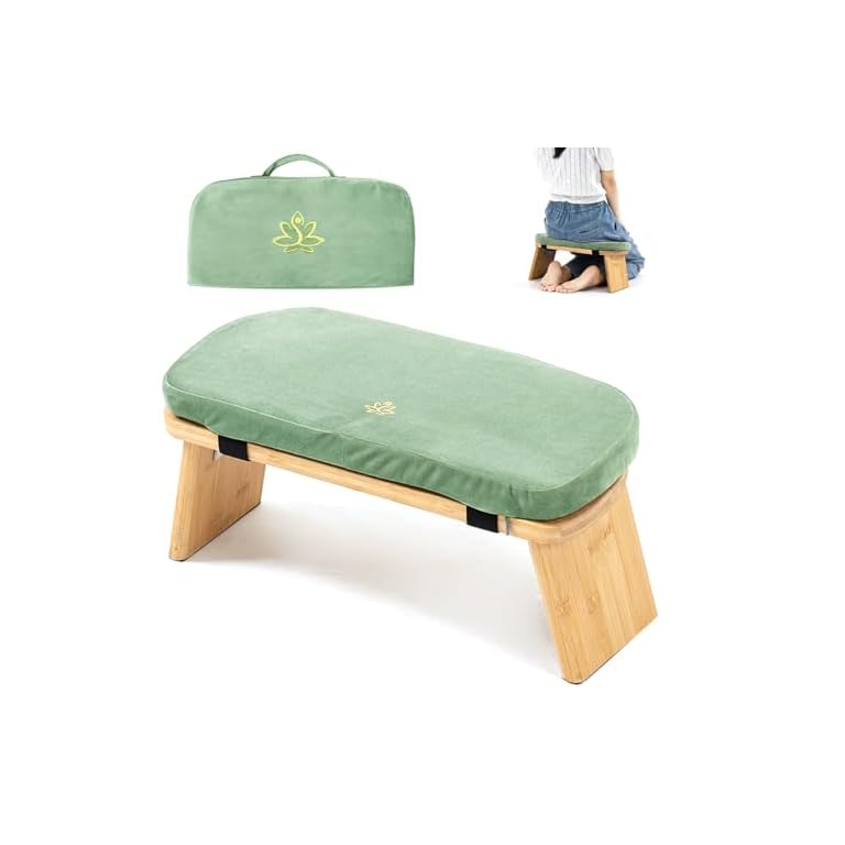 Meditation Chair w/ Extra Thick Cushion – Portable Bamboo Meditation Bench w/ Magnetic Locking Hinge – Anterior Tilt Seiza Bench Ideal for Comfortable & Stable Meditation – Sleek Canvas Kneeling Chair