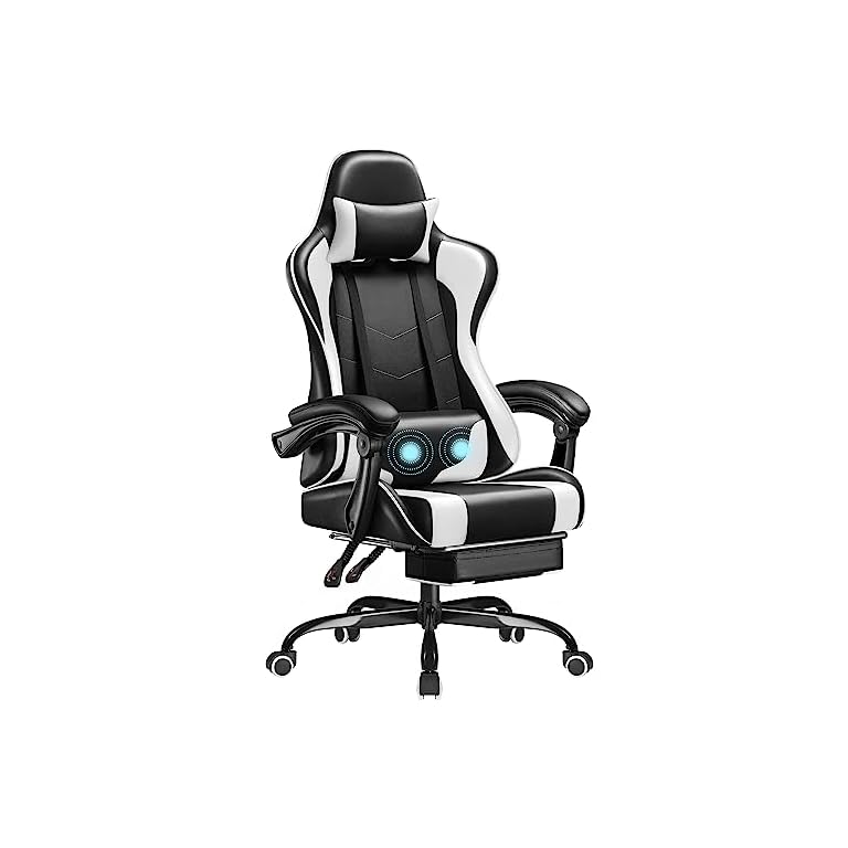 Homall Gaming Chair, Video Game Chair with Footrest and Massage Lumbar Support, Ergonomic Computer Chair Height Adjustable with Swivel Seat and Headrest (White)