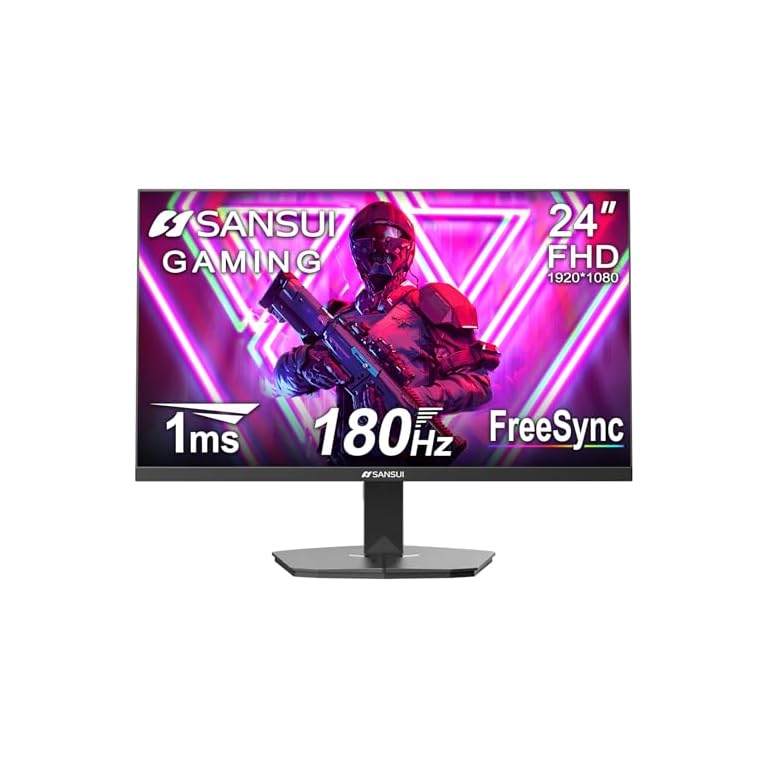 SANSUI 24 Inch Gaming Monitor 180Hz 1Ms FreeSync HDR 110% sRGB FHD 1080P Computer Monitor HDMI DP Ports Eye Care Frameless VESA Mount Cable Management(ES-G24F4L HDMI Cable Included)
