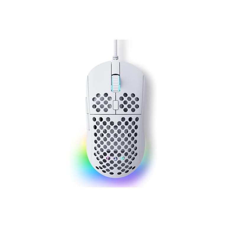 TMKB Falcon M1SE Ultralight Honeycomb Gaming Mouse, High-Precision 12800DPI Optical Sensor, 6 Programmable Buttons, Customizable RGB, Drag-Free Paracord, Ergonomic, Wired – Matte White