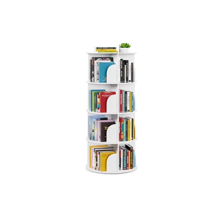 SpaceAid 4 Tier Rotating Bookshelf Tower, Spinning Bookcase Lazy Susan, Revolving 360 Book Shelf Storage Round Carousel, Vertical Rotate Turning Spiral Corner Organizer, White