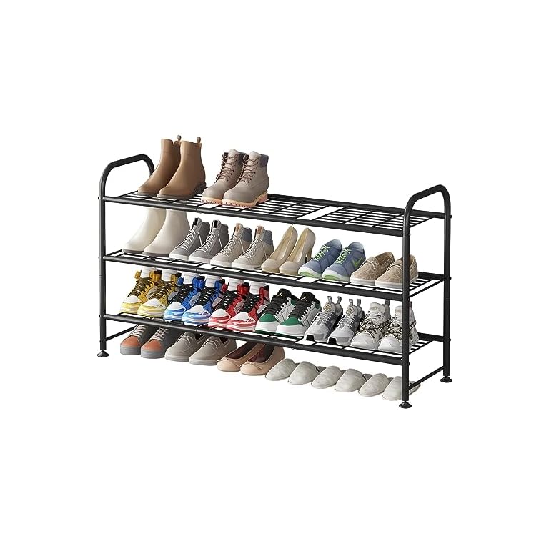 KEETDY 3-Tier Long Shoe Rack for Closet Metal Shoe Organizer for Entryway, Wide Stackable Shoe Storage Shelf with Sturdy Wire Grid for Closet Floor, Bedroom, Black