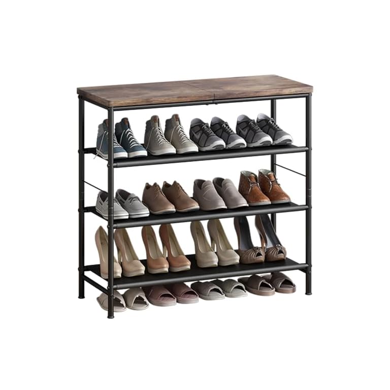 Seville Classics Sturdy Freestanding Storage Shelf for Bedroom, Closet, Entryway, Dorm Room Organizer Stackable Durable Metal Shoe Rack Espresso Slat, 3-Tier (NEW MODEL)