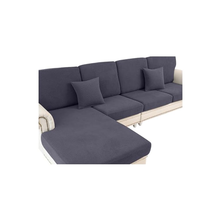Couch Cushion Covers for Sectional Sofa L Shape Washable Separate Seat Chaise Couch Cover Stretch Sofa Slipcovers with 2 Pcs Pillowcases(3 Seater + 1 Chaise, Dark Grey)