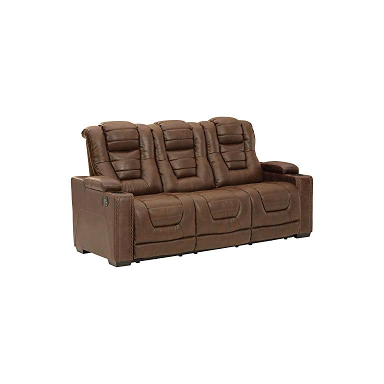 Signature Design by Ashley Owner’s Box Faux Leather Power Reclining Sofa with Adjustable Headrest, Brown