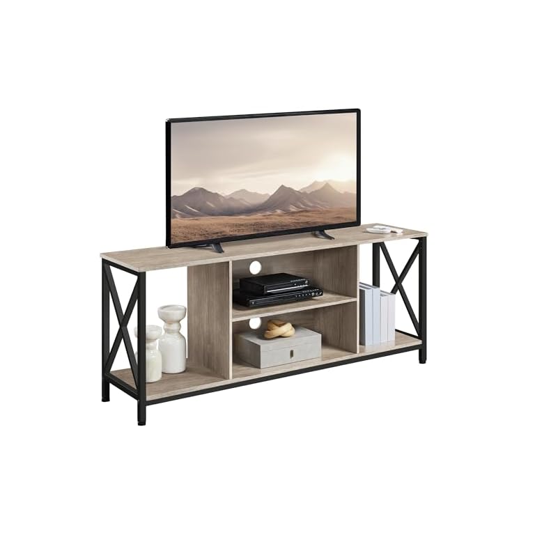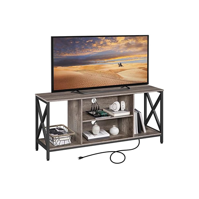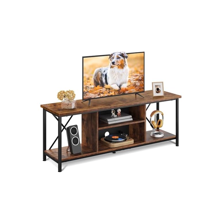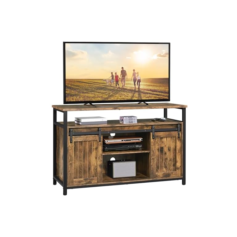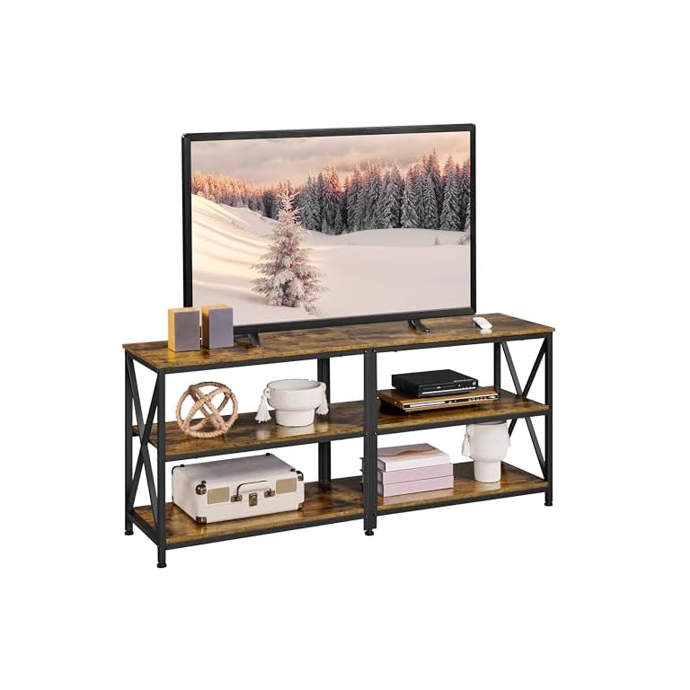 WLIVE TV Stand up to 65 Inch TV, 55″ Entertainment Center, Industrial TV Console with Open Storage Shelf for Living Room and Bedroom, Rustic Brown