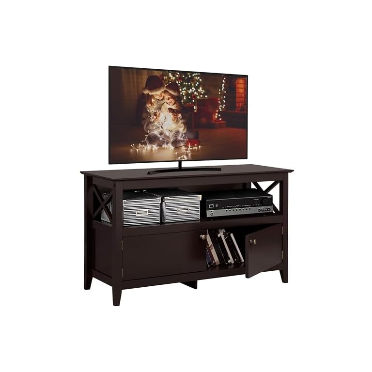 Yaheetech Wooden TV Stand for TVs Up to 48 inch, Media Entertainment Center Table, TV Cabinet Table with Storage Open Shelf & 2 Doors for Living Room, Espresso