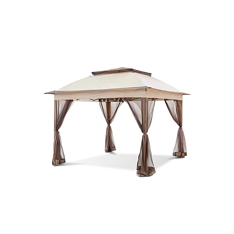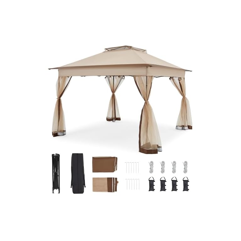 CROWN SHADES 13×13 Pop Up Gazebo, Canopy Tent, Gazebos on Clearance – Outdoor Gazebo for Backyard & Patio Furniture – Carpa Pop Up Tent with Wheeled STO-N-Go Cover Bag (Beige & Coffee)