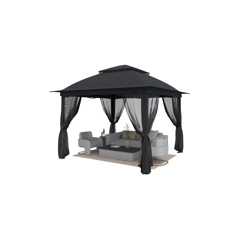 Bezseller 11×11 Pop Up Gazebo Tent with Mosquito Netting,Outoor Canopy Tent Large Quick Set and Easy to Carry,Water-Resistant Oxford Tarp Shelter for Patio Garden Backyard Party