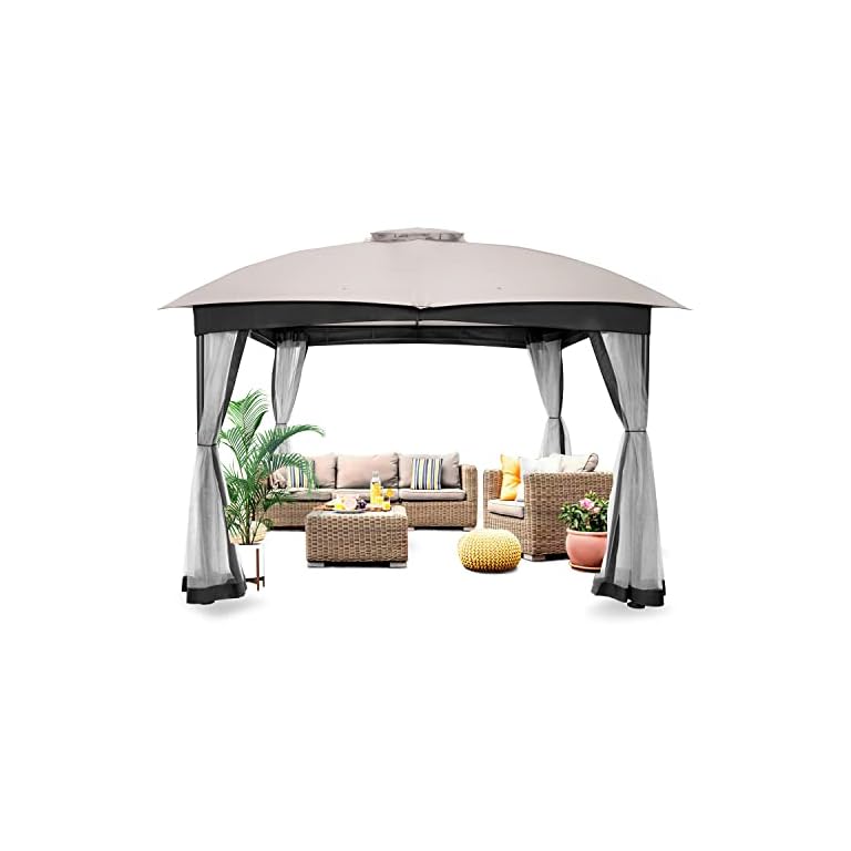 COOS BAY 11×11 Pop Up Instant Gazebo Tent with Mosquito Netting Outdoor Canopy Shelter with 121 Square Feet of Shade (Beige)
