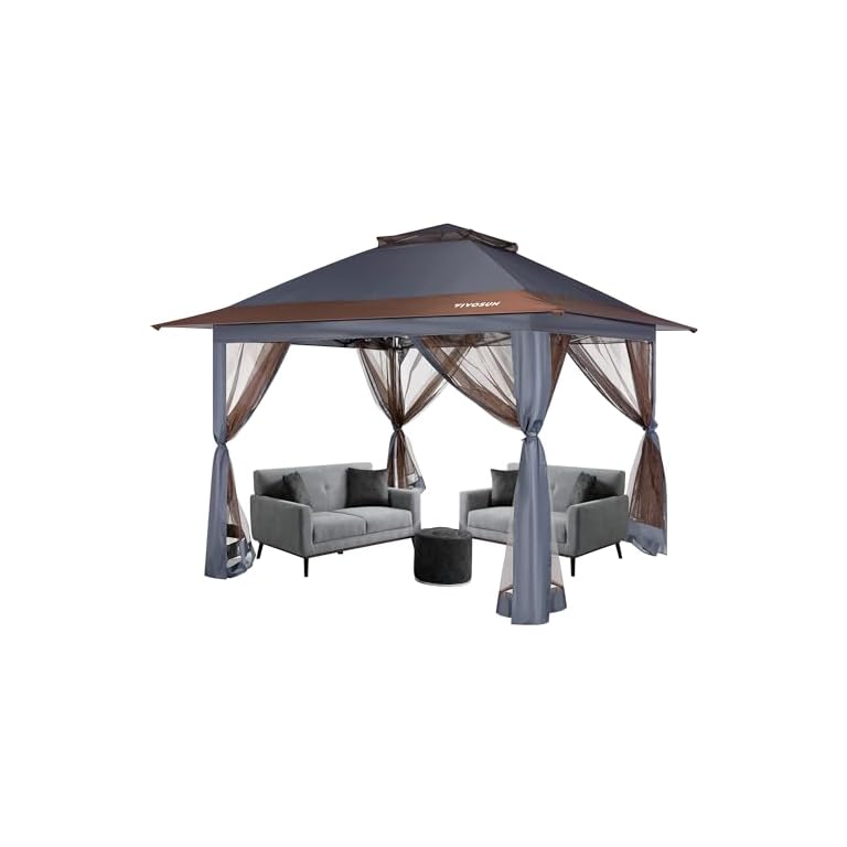 VIVOSUN 13 x 13 Pop Up Canopy Tent, Quick Setup Canopy Shelter with Mosquito Netting, Center Lock, Storage Bag, Instant Outdoor Gazebo for Parties, Patio, Lawn, Garden, Backyard