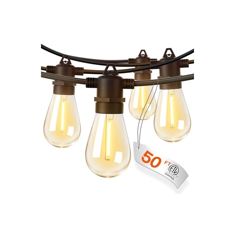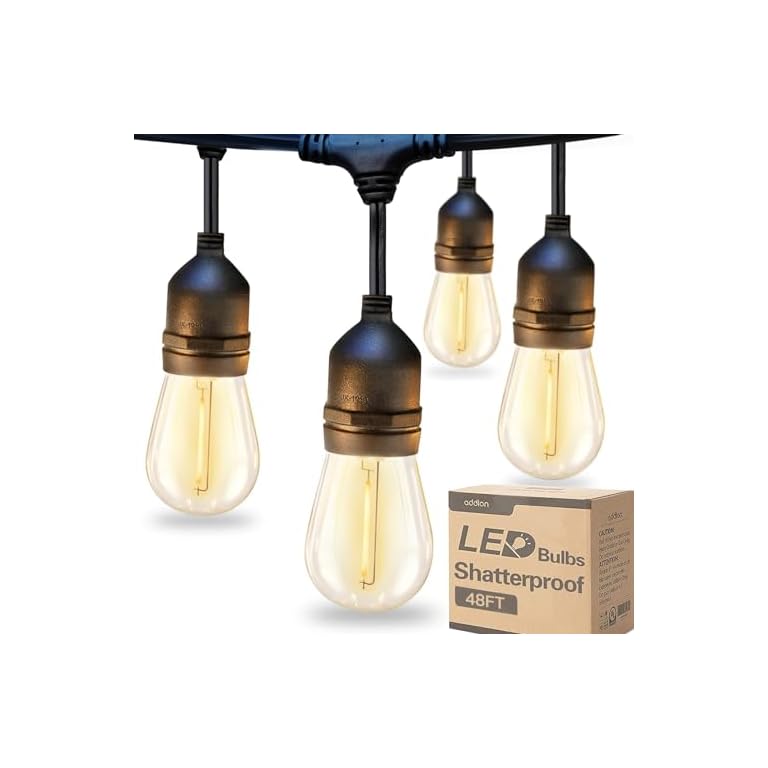 addlon 48 FT Outdoor String Lights Commercial Grade Weatherproof Strand, 18 Edison Vintage Bulbs, 15 Hanging Sockets (3 Spare Bulbs), ETL Listed Heavy-Duty Decorative Christmas Lights for Patio Garden