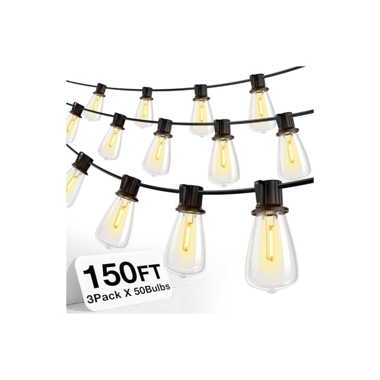 addlon 150 FT (3x50FT) Outdoor String Lights,Waterproof Patio Lights ETL Listed with 45+3 Shatterproof Dimmable ST38 LED Bulbs,2200K Connectable Outdoor Lighting for Backyard Bistro Garden