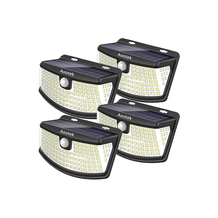 Aootek New Solar Motion Sensor Lights 120 LEDs with Lights Reflector,270° Wide Angle, IP65 Waterproof, Step Lights for Front Door, Yard, Garage, Deck (Back Button 4-Pack)