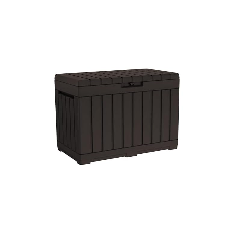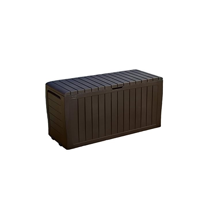 Keter Kentwood 50 Gallon Resin Deck Box-Organization and Storage for Patio Cushions, Throw Pillows and Garden Tools, Brown