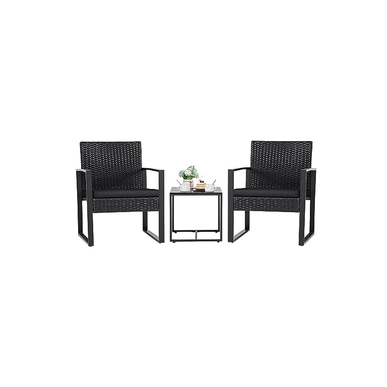 Flamaker 3 Pieces Patio Set Outdoor Wicker Furniture Sets Modern Rattan Chair Conversation Sets with Coffee Table for Yard and Bistro (Black)