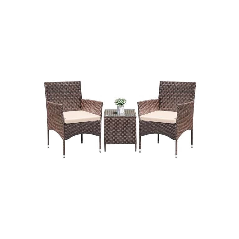 Devoko Patio Porch Furniture Sets 3 Pieces PE Rattan Wicker Chairs with Table Outdoor Garden Furniture Sets (Brown/Beige)