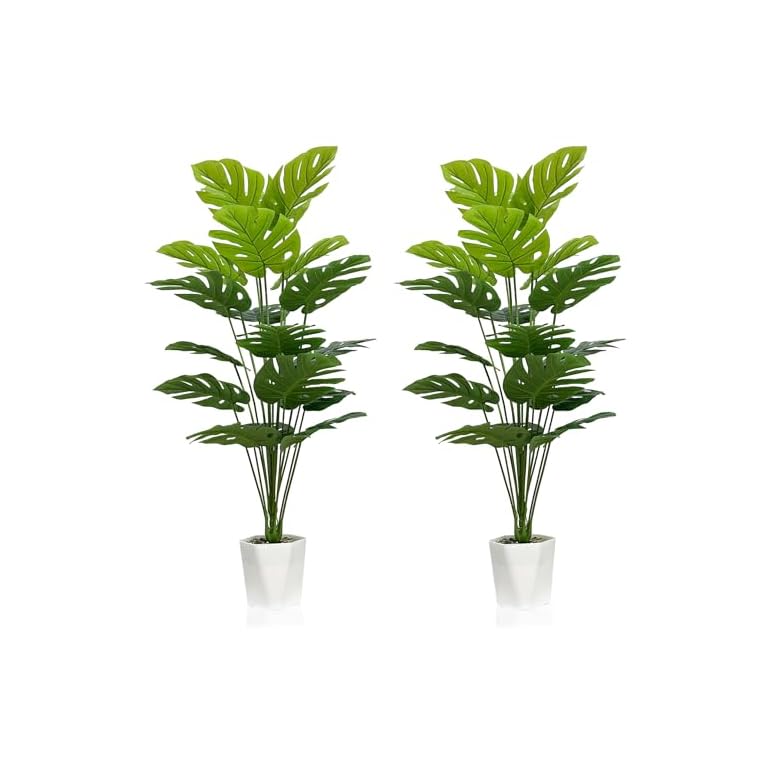 Set of 2 Artificial Monstera Deliciosa Plants in Pots, Fake Tropical Palm Tree with Greenery Leaves Stems, 43 Inch Faux Swiss Cheese Floor Plants Indoor for Home, Office, Store Decor