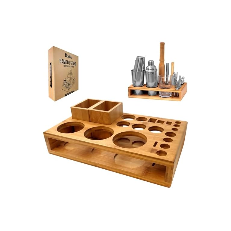 Cocktail Shaker Set, 23-Piece Stainless Steel Bartender Kit with Acrylic Stand & Cocktail Recipes Booklet, Professional Bar Tools for Drink Mixing, Home, Bar, Party (Include 4 Whiskey Stones)