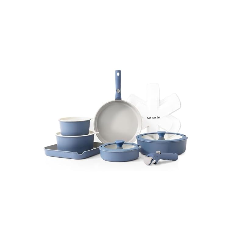 SENSARTE 17 Piece Ceramic Pots and Pans Set, Nonstick Detachable Handle Cookware, Induction Kitchen Cookware Set with Removable Handle, Dishwasher & Oven Safe, PFAS/PTFE/PFOA Free (Navy)