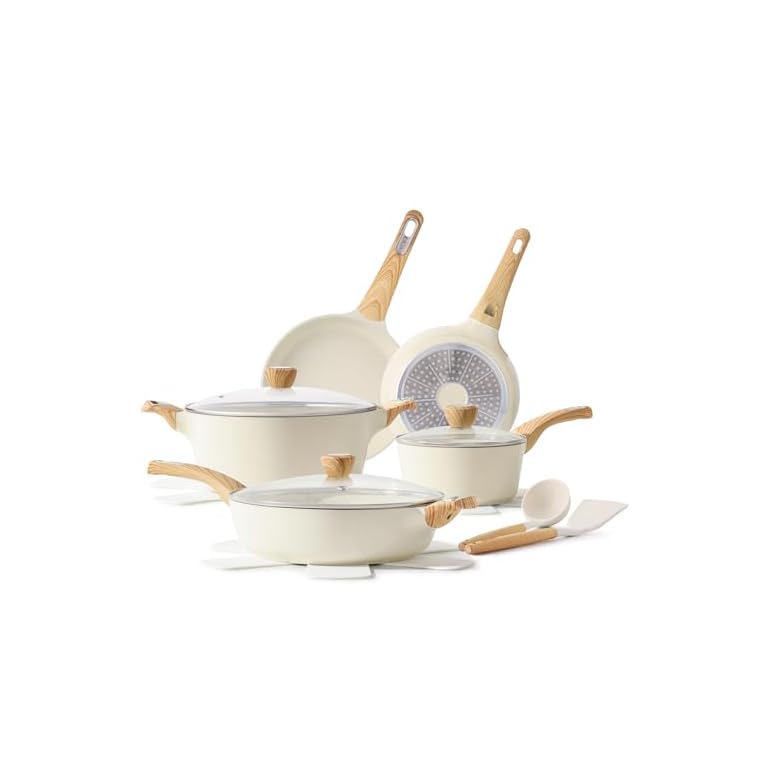 CAROTE Ceramic Pots and Pans Set Non Stick, Non-Toxic Cookwares, Healthy Ceramic Cookware Set 7Pcs,PFAS/PFOA Free,Kitchen Induction Cooking Sets Dishwasher Safe, Cream White