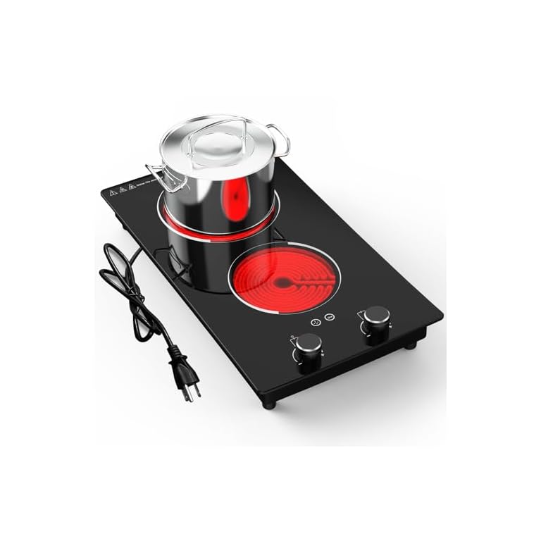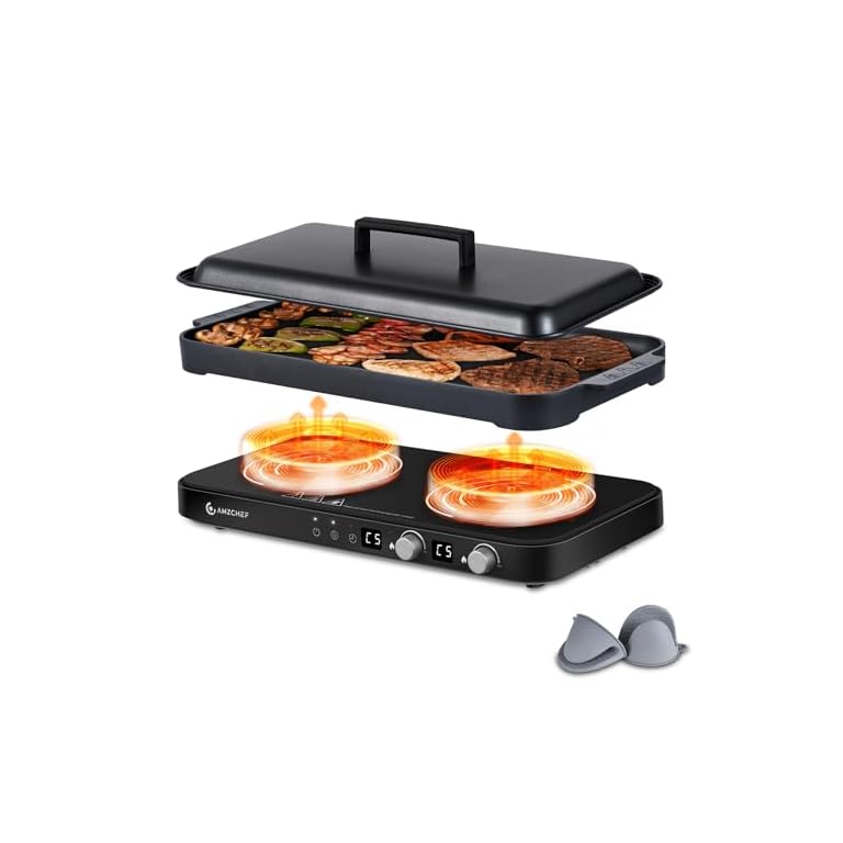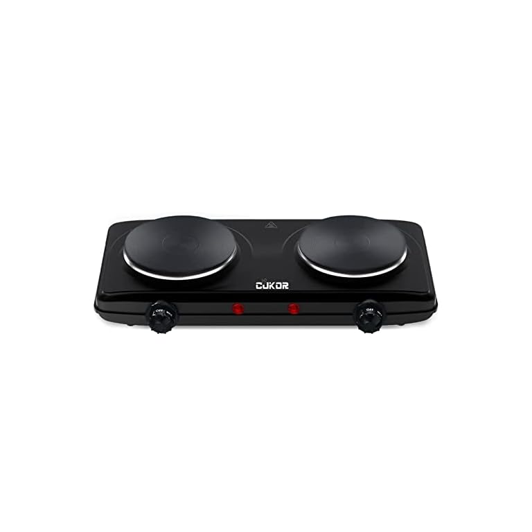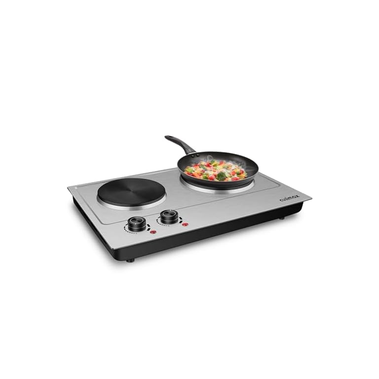 CUSIMAX 1800W Double Hot Plate, Stainless Steel Silver Countertop Burner Portable Electric Double Burners Electric Cast Iron Hot Plates Cooktop, Easy to Clean, Upgraded Version C180N