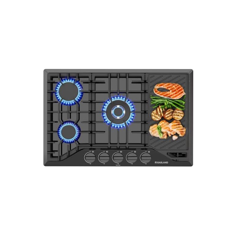 Gas Cooktop 30 Inch with Grill/Griddle, GASLAND PRO GH2305EF 5 Burner Gas Stove, Built-in NG/LPG Convertible Gas Cooktops, Gas Countertop Plug-in with Thermocouple Protection, Black