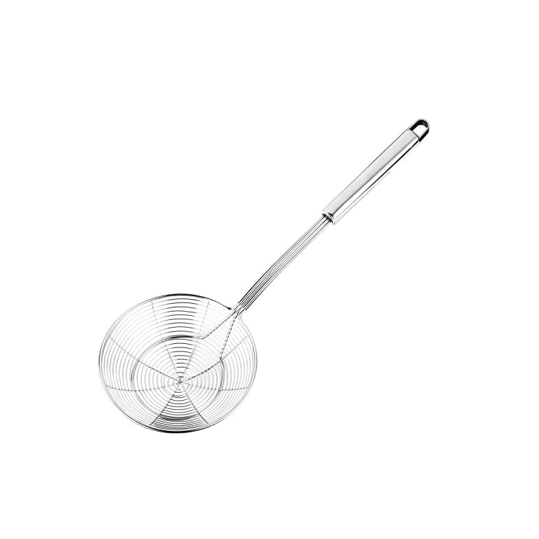 Hiware Solid Stainless Steel Spider Strainer Skimmer Ladle for Cooking and Frying, Kitchen Utensils Wire Strainer Pasta Spoon, 5.4 Inch